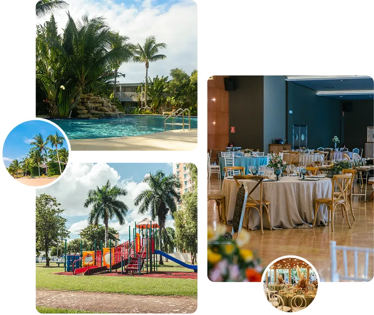 Use os filtros disponíveis para encontrar facilmente acomodações, áreas de lazer, espaços para eventos ou equipamentos.