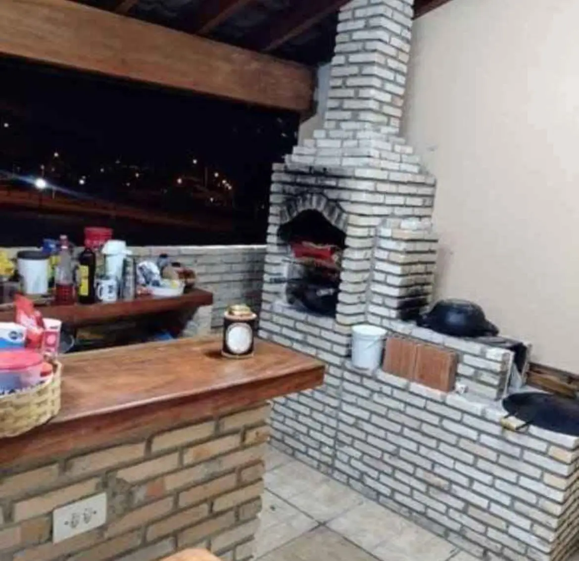 A acomodação conta com 1 quarto, 2 banheiros, área de churrasco completa, geladeira, fogão, TV, Wi-Fi e uma laje equipada com pia, churrasqueira e ducha, ideal para momentos especiais com família e amigos.