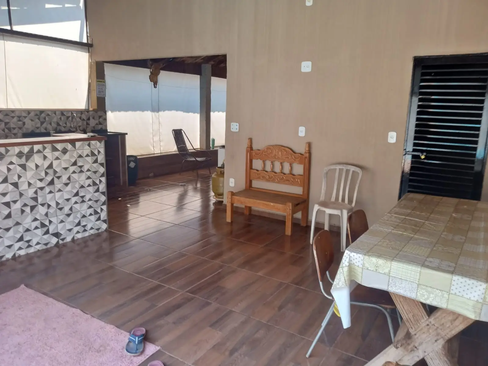 A propriedade conta com uma linda piscina, perfeita para se refrescar nos dias quentes e aproveitar momentos de diversão com a família e amigos. Para os amantes do churrasco, uma área coberta dedicada oferece um ambiente ideal para preparar deliciosas refeições ao ar livre, tornando suas confraternizações ainda mais especiais.