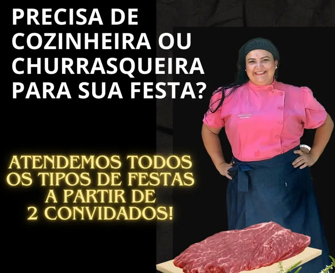 Especialista em churrascos, a chef transforma cada evento em uma experiência gastronômica única — com cortes selecionados, acompanhamentos sofisticados e aquele toque especial que encanta todos os paladares.