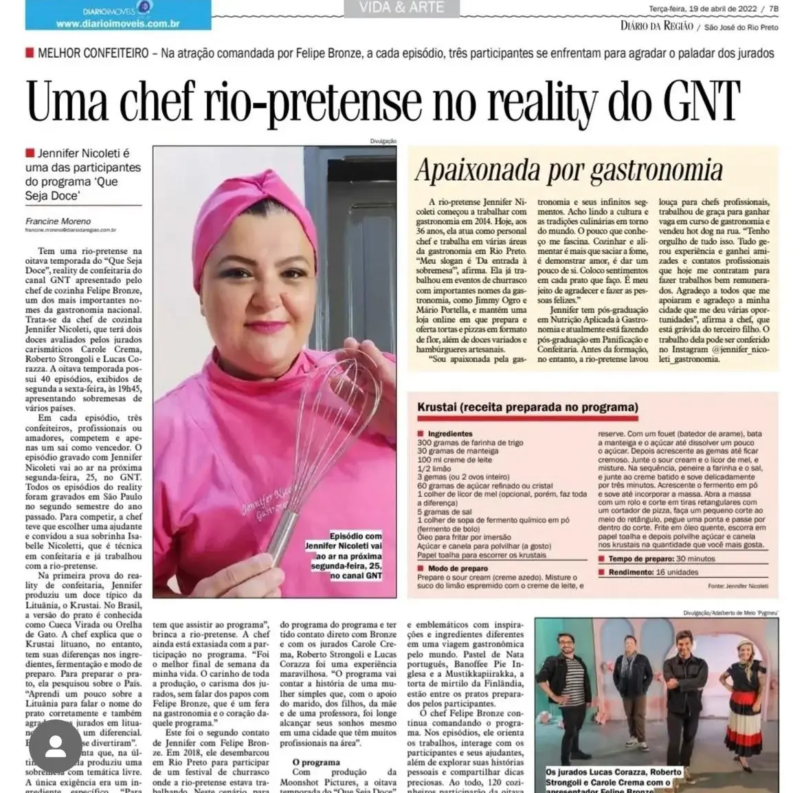 Já participou de diversos programas de TV, apresentando seu trabalho e encantando o público com pratos autorais e técnicas impecáveis.