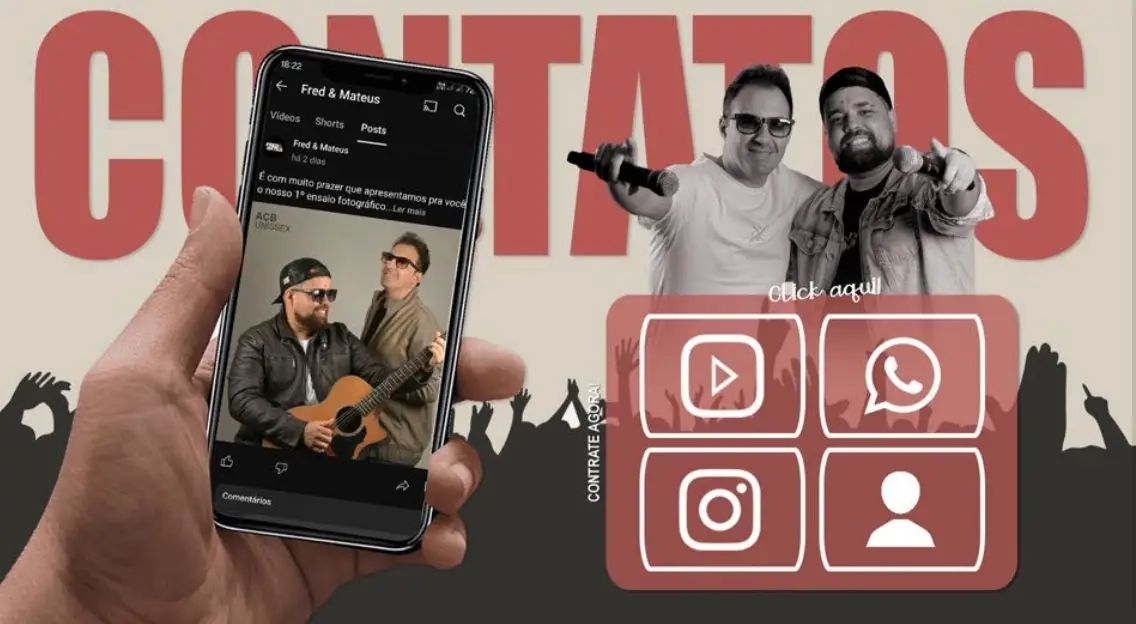 A dupla Fred & Mateus traz para o seu evento a verdadeira essência do sertanejo, misturando emoção, carisma e um repertório que não deixa ninguém parado. Com interpretações marcantes e aquele clima de festa que só o sertanejo proporciona, eles transformam qualquer ocasião em um momento inesquecível.