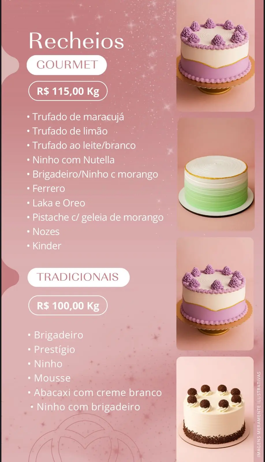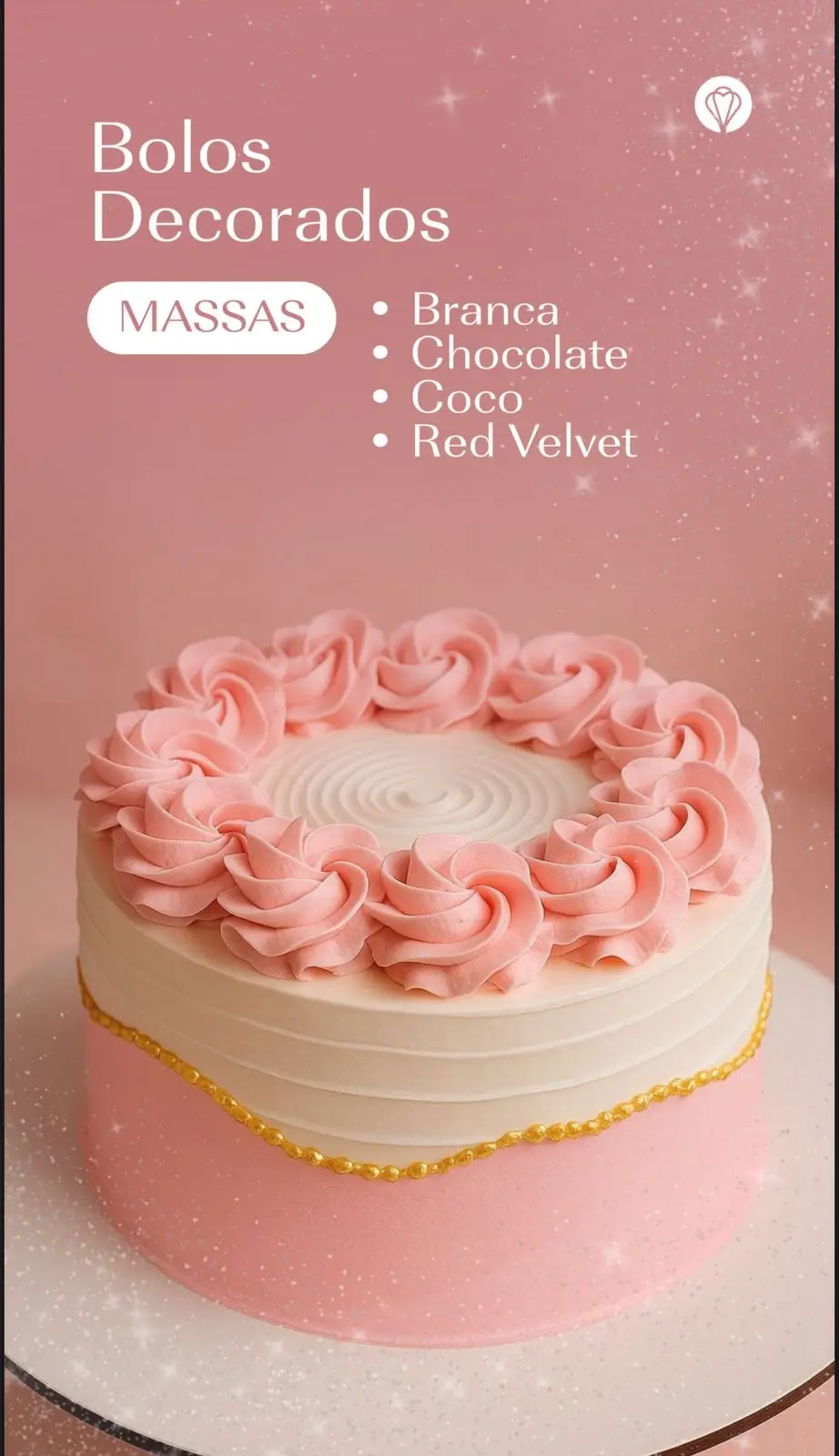 🎂 Fazemos bolos decorados com muito carinho, nas opções de massas: